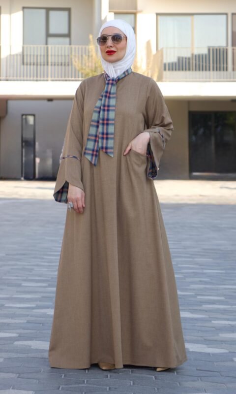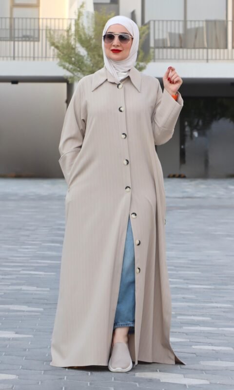 عباية بشريط لون البيج الرملي