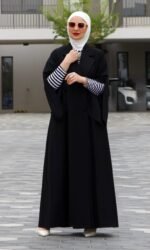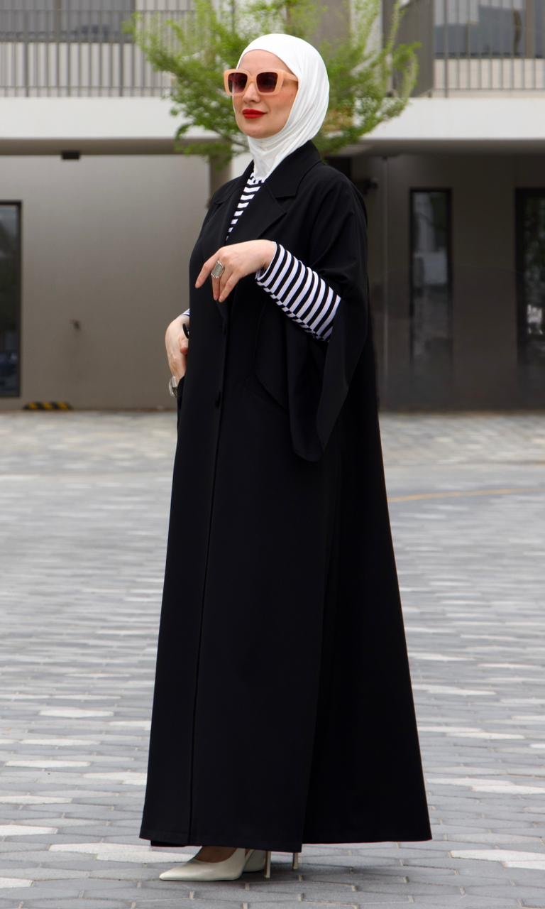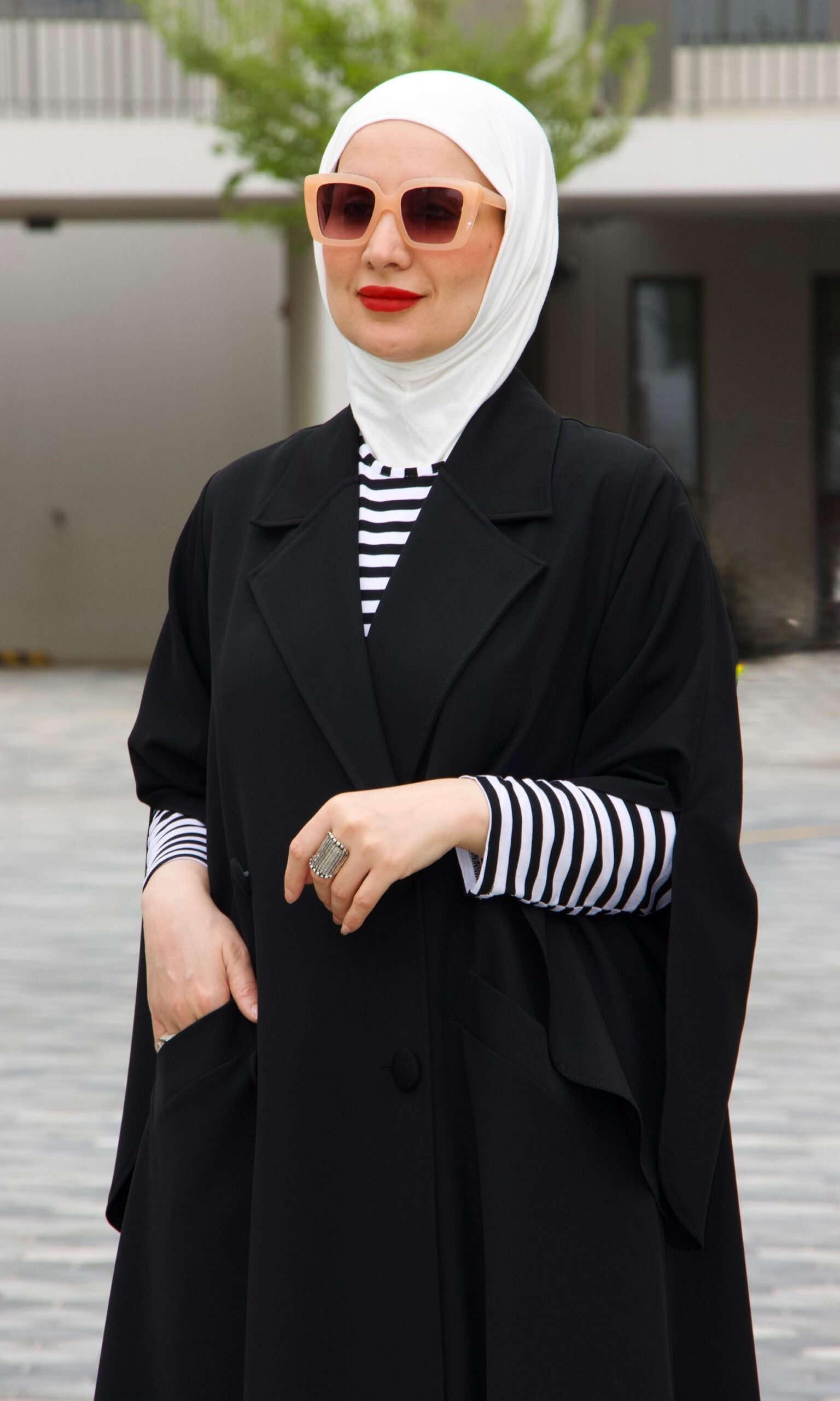 طقم قطعتين فستان بيسك كم كامل مخطط قماش ليكرا مريح وبارد +بليزر طويل بقماش نيكول كواليتي عالية وجودة ممتازة.