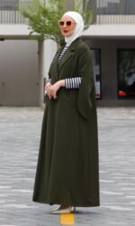 طقم قطعتين فستان بيسك كم كامل مخطط قماش ليكرا مريح وبارد +بليزر طويل بقماش نيكول كواليتي عالية وجودة ممتازة.