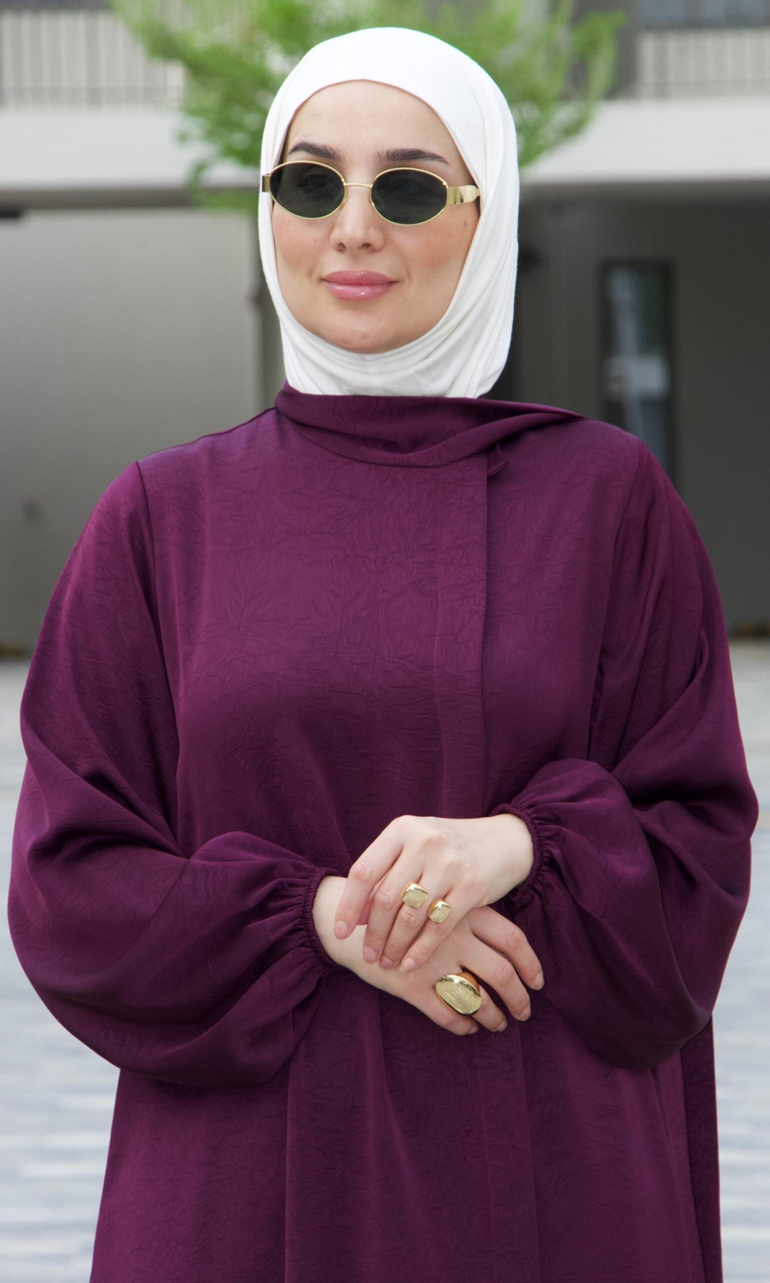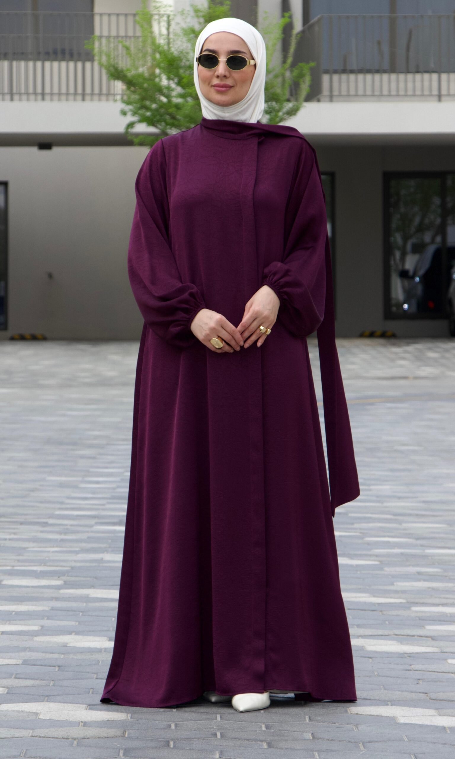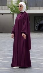 عباية بسكارف طويل لون موف غامق