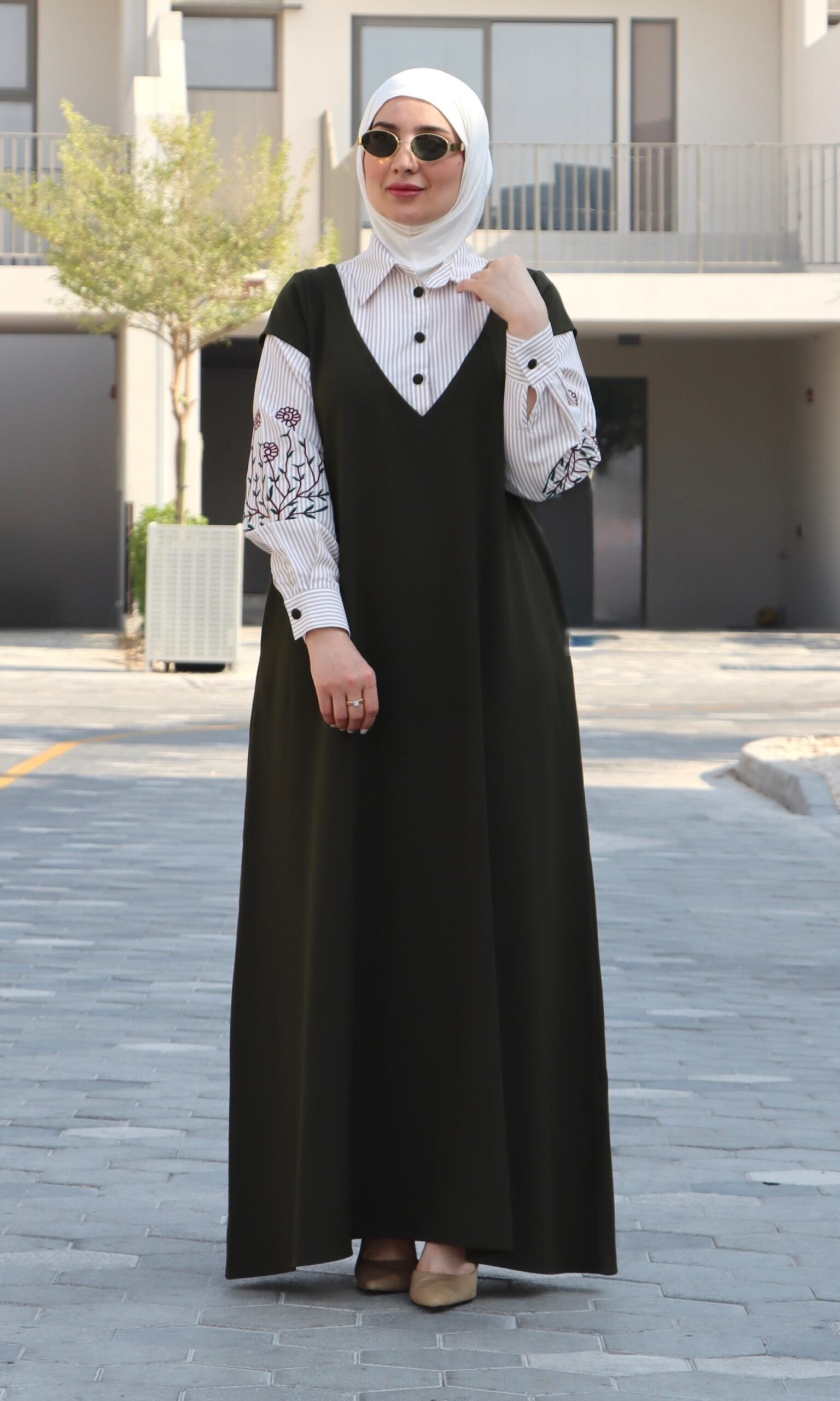 عباي بقماش السانتانا الخريفي الناعم .. والقميص من قماش خريفي وهو مخيط مع العباي.