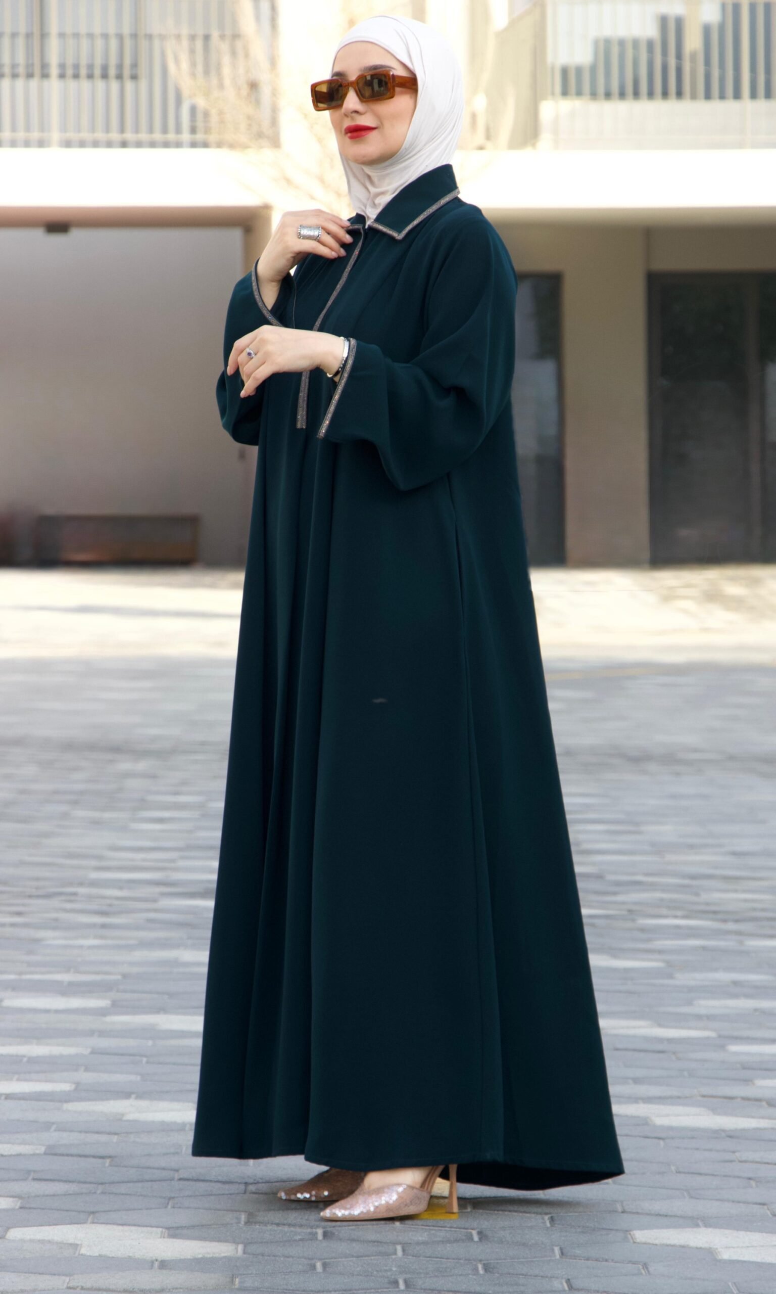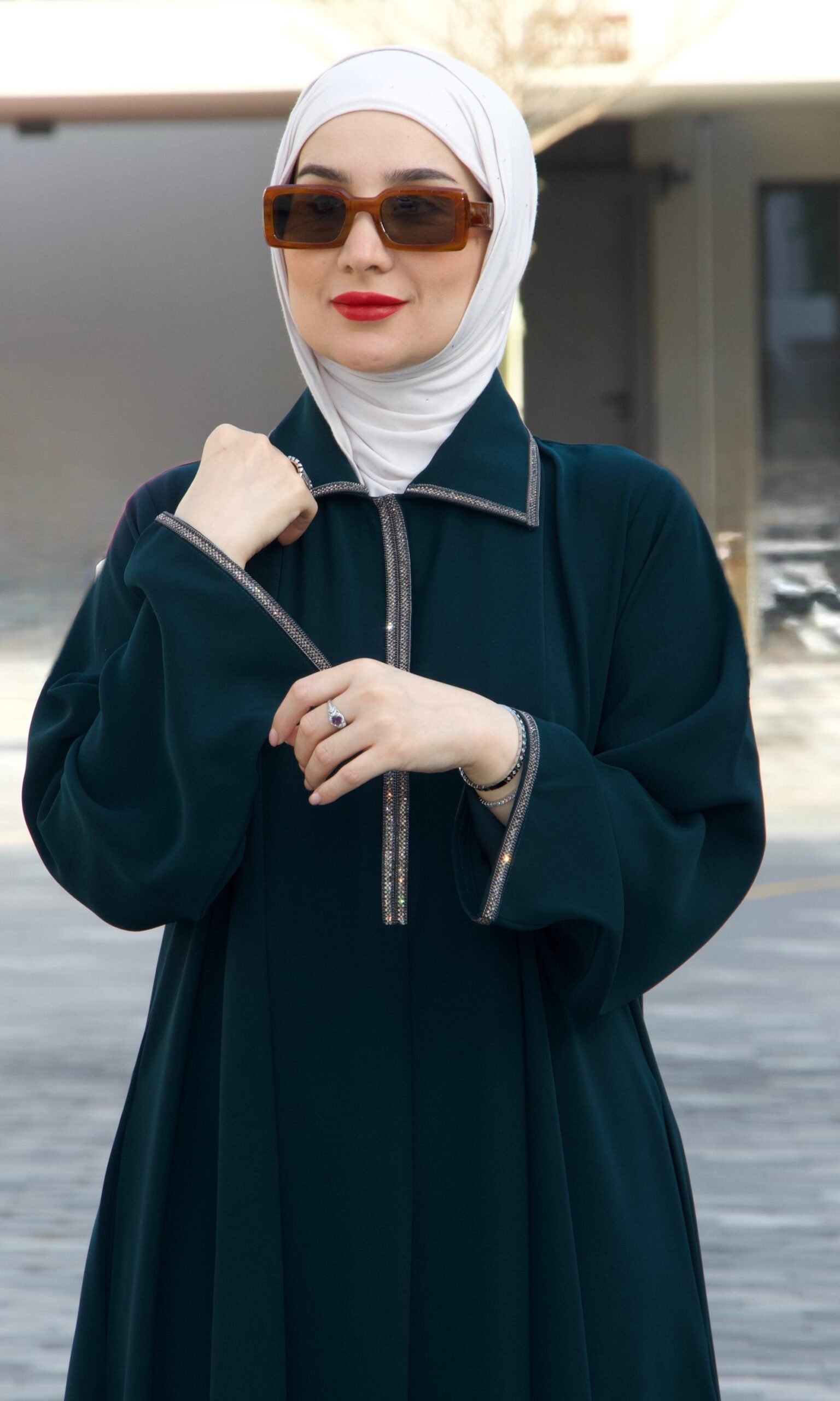 عباي خليجية بقماش ربيعي صيفي مريح وناعم وفخم مع ستراس ناعم عالقبة والأكمام .