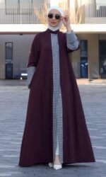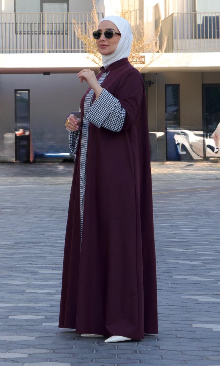 عباي بقماش ربيعي مع تحلاية عالكم وعلى طول العباي من الامام بنقشة مميزة والوان جميلة .