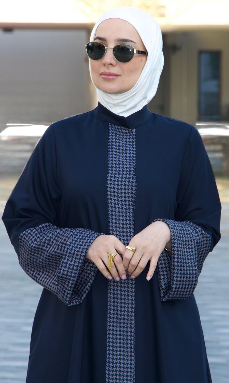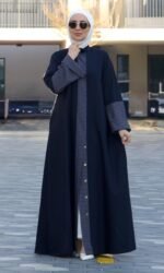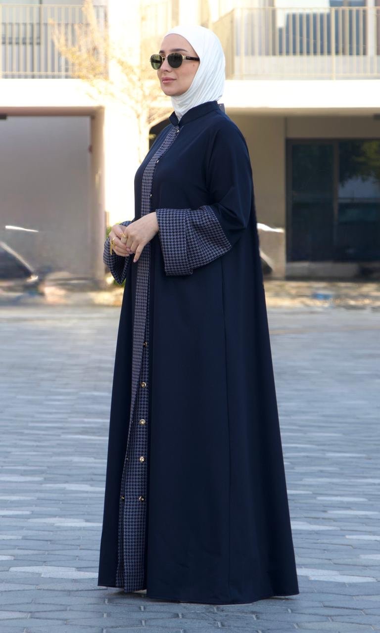 عباي بقماش ربيعي مع تحلاية عالكم وعلى طول العباي من الامام بنقشة مميزة والوان جميلة .